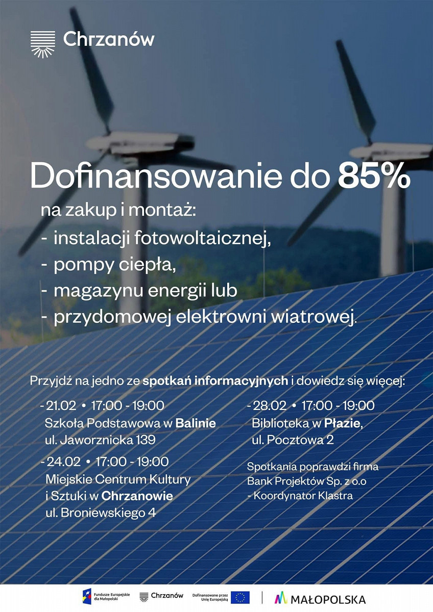 Gmina Chrzanów planuje wystąpić o udział w projekcie parasolowym dla mieszkańców polegającym na dofinansowaniu zakupu i montażu: