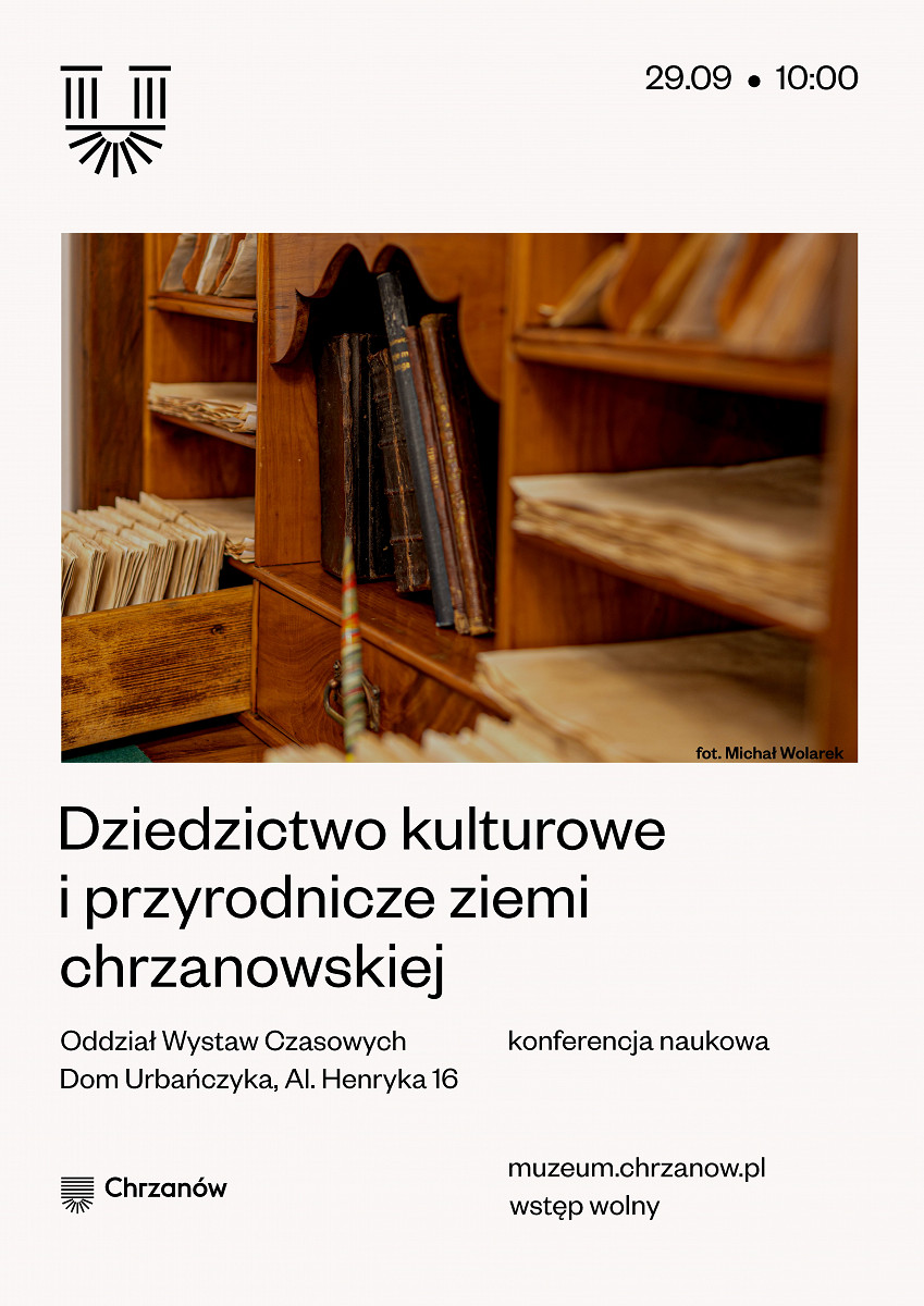 Serdecznie zapraszamy na kolejną konferencję naukową pt.: „Dziedzictwo kulturowe i przyrodnicze ziemi chrzanowskiej”, która odbędzie się w „Domu Urbańczyka”, przy Alei Henryka 16, 29 września 2023 r., o godzinie 10:00. Wstęp wolny.